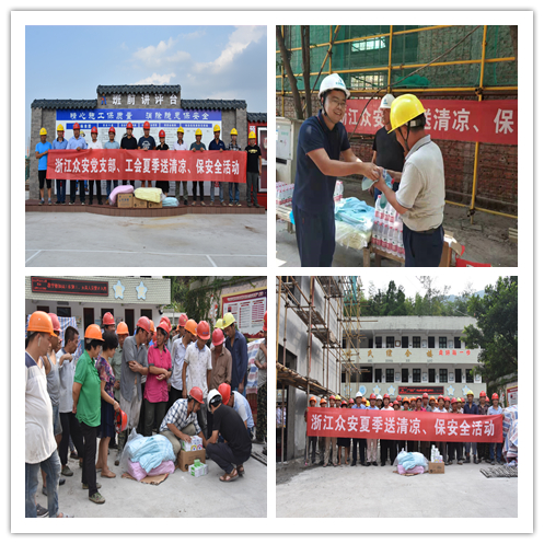 杭城自入伏以來,連續高溫不斷,一線工程施工現場室外氣溫更是居高不下,面對如此高溫烤驗”,浙江眾安建設集團有限公司結合支部集團工會,開展浙江眾安夏季送清涼,保安全活動為主題的高溫送清涼系列關懷活動,為堅守一線的工作人員守護清涼一夏