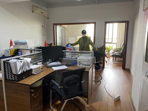 2月19日,集團(tuán)第一批員工有序復(fù)工。公司設(shè)立防護(hù)組,早早進(jìn)行辦公室的全面消毒。8:30左右,有員工陸續(xù)到達(dá),對進(jìn)入公司大門的復(fù)工人員,有專人負(fù)責(zé)測體溫、噴灑消毒液、發(fā)放新口罩和消毒液、體溫登記等工作。對體溫超過37.3攝氏度的人員堅決禁止入內(nèi),對釘釘員工健康碼非綠碼的堅決禁止入內(nèi),做到全天有人值守,做到發(fā)現(xiàn)異常立即預(yù)警上報,做到衛(wèi)生間、公共區(qū)域配備消毒洗手液,做到廢棄口罩集中回收,做到場所每日消毒登記,做到各類防疫臺賬即時更新,多措并舉,復(fù)工抗疫兩手抓。