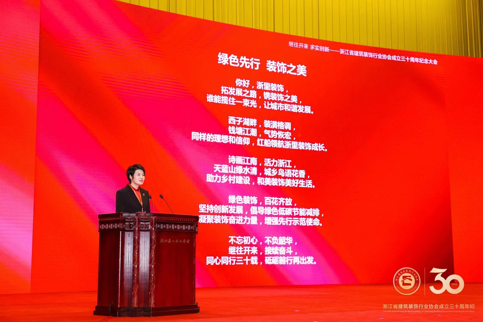 11月13日下午,浙江省建筑裝飾行業協會第七屆一次會員大會、裝飾行業高質量創新發展大會暨協會成立三十周年紀念大會在浙江省人民大會堂隆重召開。浙江省第十屆人大常委會副主任、省人民政府原副省長葉榮寶,浙江省第十二屆人大常委會副主任、省人民政府原副省長茅臨生,浙江省住房和城鄉建設廳黨組書記、廳長應柏平等政府領導,中國建筑裝飾協會、省建筑裝飾行業協會等重要領導出席大會。