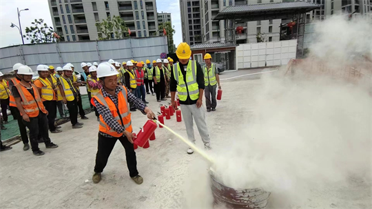 活動當天,安全教育官向所有參與應急演練的工人和管理人員詳細講解了滅火器的使用方法及注意事項。為了提高全員的應急處置能力,項目部還進行了防火消防演練,包括發現火情、滅火消防、滅火器滅火等演練活動。通過這次深入施工現場的急救、消防演練活動,工人們得以直觀、規范地進行演練,從而掌握了基本的火災預防和自救常識,并且熟練掌握了滅火器的使用方法。