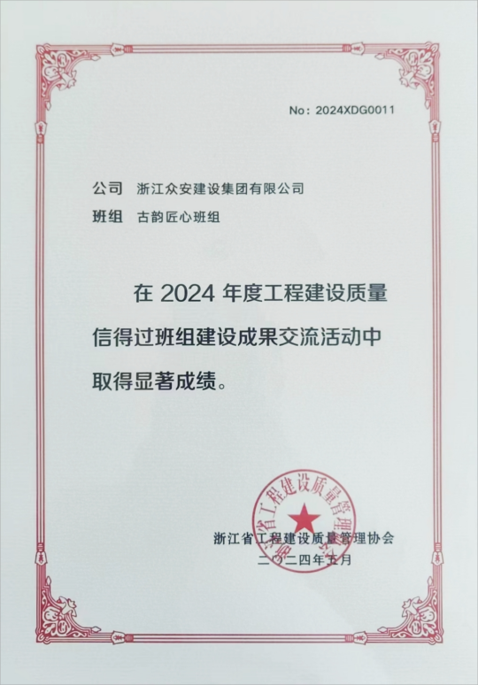 浙江眾安建設集團有限公司古韻匠心班組成立于2016年10月,班組成員9人。主要負責公司城市更新、古建筑板塊業務的加固改造、裝修等建設施工任務。先后完成蒼南縣霞關風情小鎮老街改造提升項目工程總承包、臨安錦城街道金盾花園、錦福新村舊改項目工程總承包(EPC)、金華鐵路文化公園內八棟歷史性保留建筑加固改造等項目施工。截止2023年底已累計完成改造面積32萬平米,累計施工產值5.3億元。